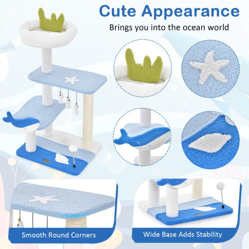 3.The cat activity center is designed with scratching posts made of wear-resistant sisal rope.