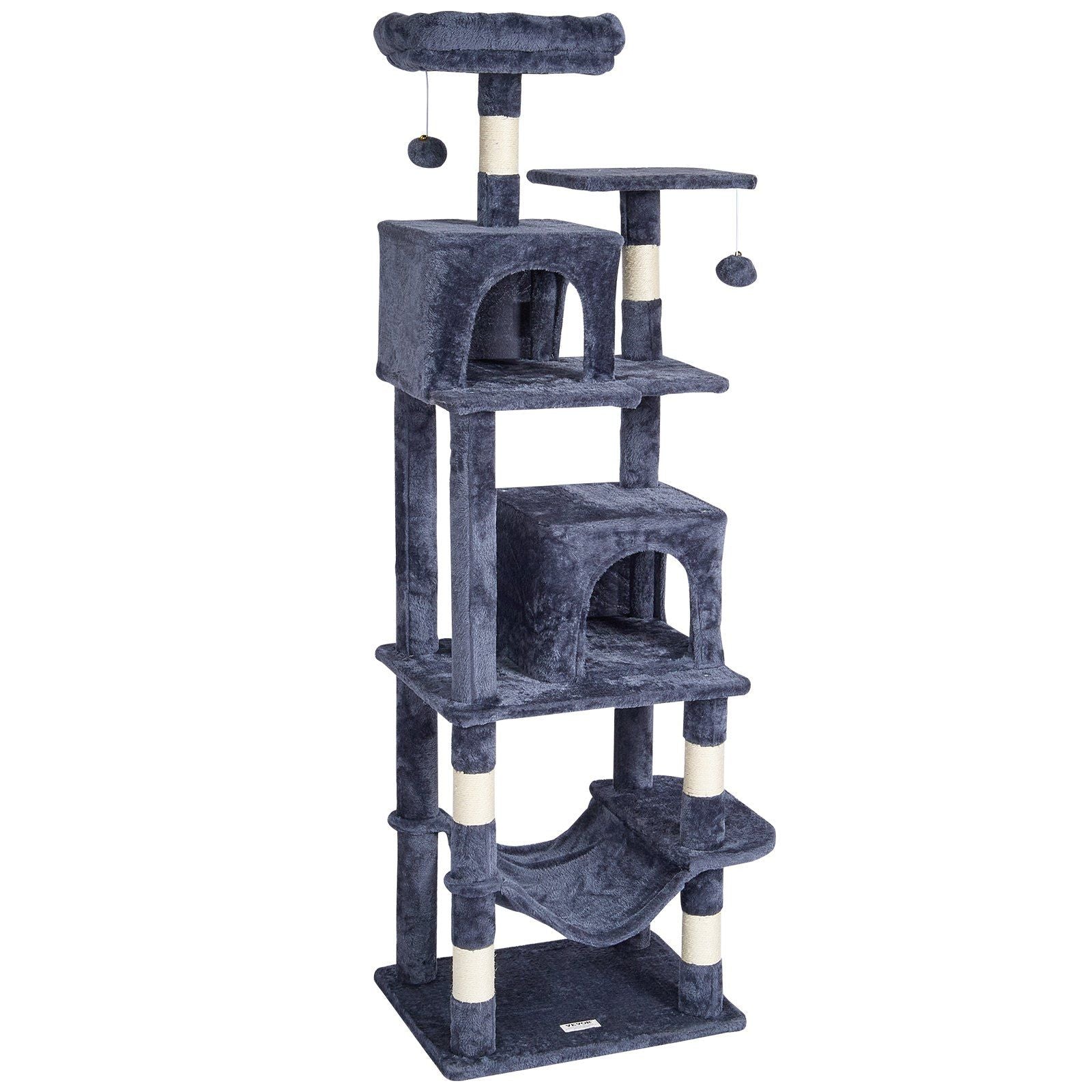 VEVOR Cat Tree 63" Cat Tower with 2 Cat Condos Sisal Scratching Post Light Grey